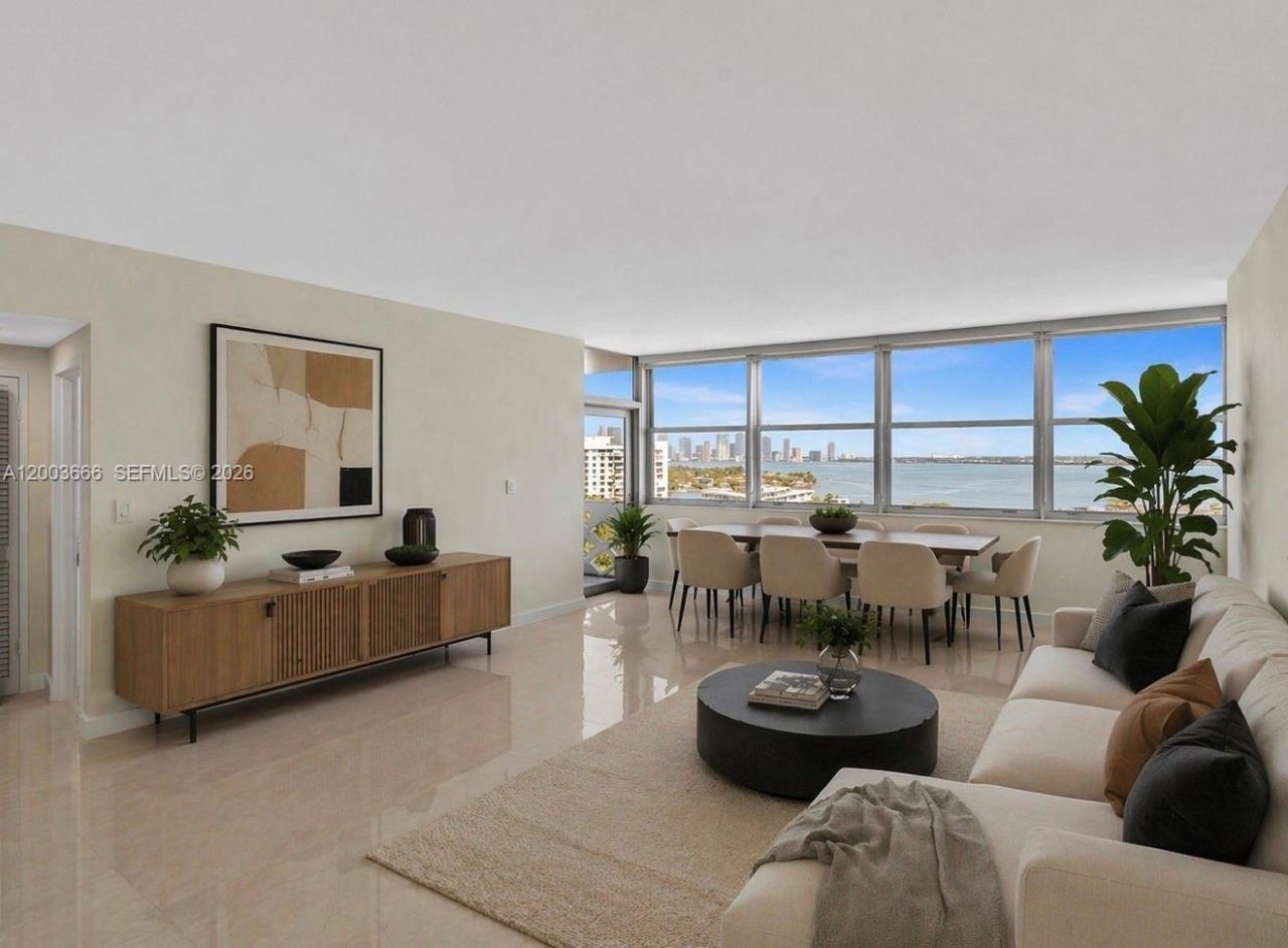 Rare opportunity to own a stunning bay view residence at the iconic Belle Plaza on Belle Isle, featuring breathtaking bay and downtown skyline views. Priced to sell, this updated 1-bedroom, 2-bathroom unit offers approximately 900 SF of interior space filled with fantastic natural light. The spacious layout includes generously sized rooms, an abundance of closets, including a beautifully built-out walk-in closet, porcelain flooring, recessed lighting, and wall-to-wall impact windows. A large private balcony provides the perfect setting to enjoy sweeping bay views and gorgeous sunsets. Additional highlights include assigned parking and the opportunity to purchase with conventional financing with as little as 3?5% down. The building has completed its recertification, offering added peace of mind. Ideally located directly across from Belle Isle Park and The Standard, and just moments from Sunset Harbours renowned dining, shopping, and entertainment. Belle Plaza offers exceptional amenities, including a heated bayside pool, expansive sundeck, jacuzzi, fitness center, tennis court, BBQ area, resident lounge, bike storage, 24-hour concierge/security, and valet. Schedule your private showing today while this exceptional residence lasts.